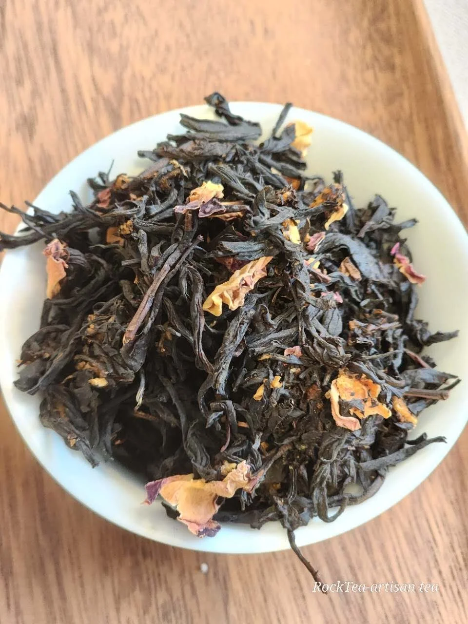 it's not made with artificial flavoring. Instead, it contains real dried lychee pulp and whole roses, blended with black tea.
